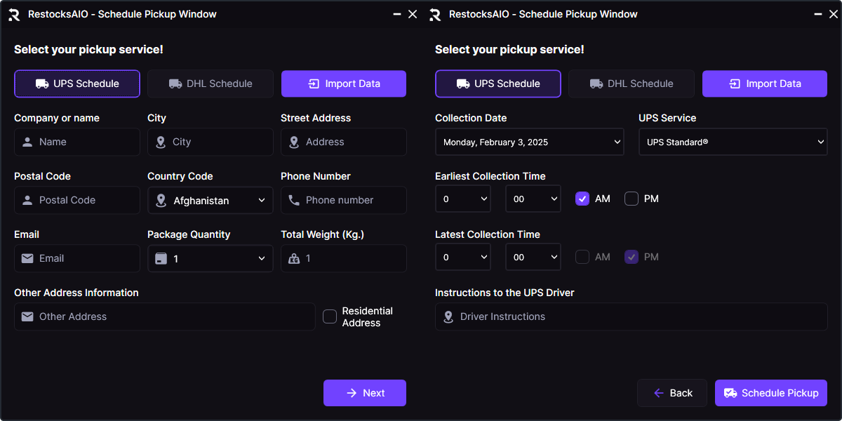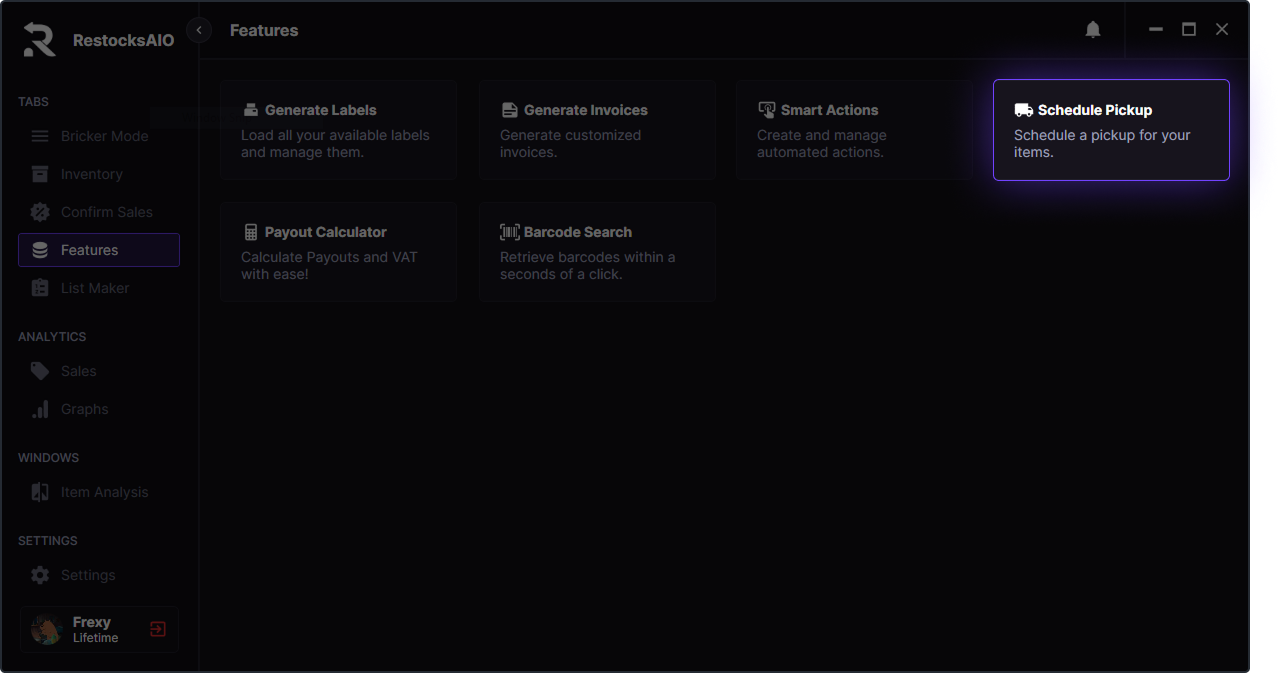 We bypass the fee that UPS has to generate a pickup, meaning that the pickups generated by RestocksAIO are free.